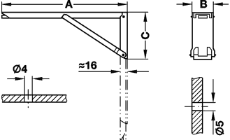 Konzola sklopiva, nosivost 40 kg po paru, žuta krom 250 mm